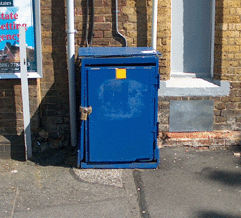 Cobblers is constructed entirely from hardened rubber. Just inside the entrance is a storage area for first aid equipment. Used as the main access to the devil's observation platforms overlooking the M25 in Hertfordshire, this entrance sees a great deal of use in the winter months and in the build up to Easter. Cobblers ceases to exist for a few minutes every Wednesday morning.
